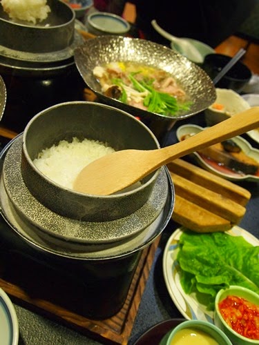 休息一會,我們一家五口便換上浴袍去泡溫泉了。室內大浴場和露天風呂,我們當然先試一下後者了,不過去露天溫泉要走一段路,加上又下雨刮風,傻瓜媽媽怕感冒,起初很不想去的,幾經我們慫恿,最後還是聽我們話,換上木屐,打著雨傘走去了。